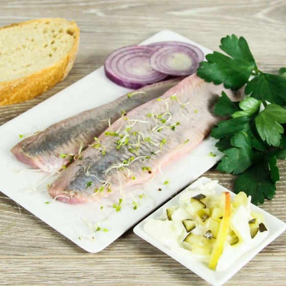 Unschlagbar lecker und zart! In unserem Haus gereift und veredelt erhält der Matjes Blum seinen unvergleichbaren Geschmack. Besonders fein mit Schwarzbrot und Hausfrauensauce (Apfel-Zwiebel-Sahne). Vorsicht Suchtgefahr!