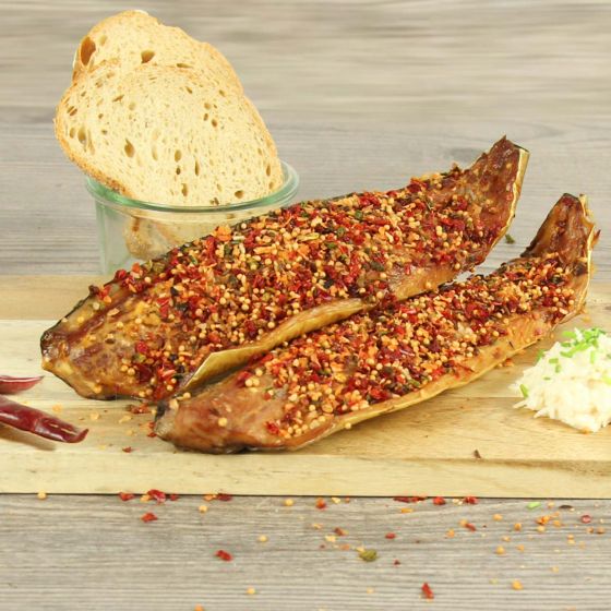 Ausgewählte Makrelenfilets werden über Buchenholz geräuchert und erhalten somit ihren aromatischen Geschmack. Verfeinert werden die Filets im Anschluss mit erlesenen Gewürzen. Dank ihres hohen Anteils an Omega-3-Fettsäuren ist die Makrele ein sehr gesunder Leckerbissen!
