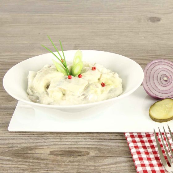 Frisch zubereitet! Der Sahneheringstopf ist eine cremige Delikatesse aus dem Hause Blum. Die Sauce aus frischen Gurken und Zwiebeln ist legendär und der Hering saftig und frisch. Köstlich auf Brot oder mit Pellkartoffeln.