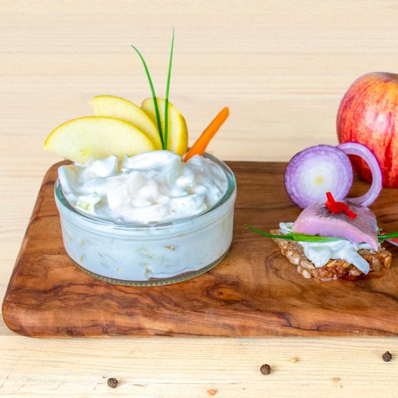 Bei uns auch als Hausfrauensauce bekannt und sollte zu keinem Matjes fehlen, passt aber mit dem erfrischend leicht fruchtigem Geschmack auch zu vielen anderen Produkten!